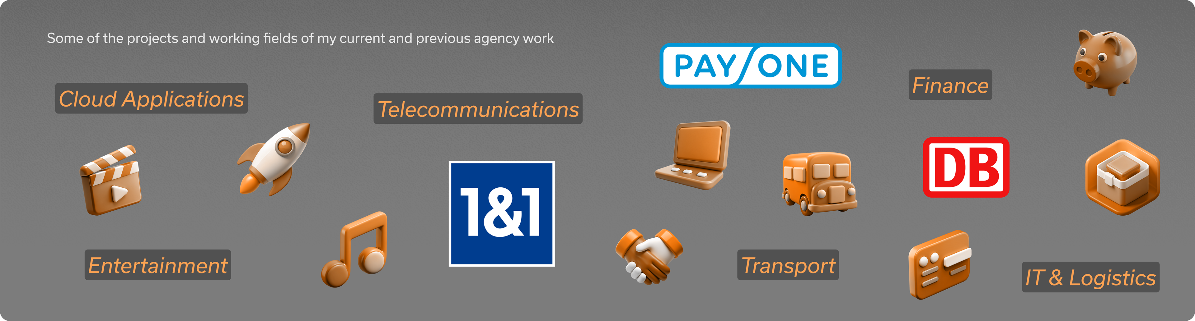 The current palette of clients whose projects I am supporting and have previously supported are huge companies of the transport, telecommunications, payment and IT and logistics sectors in the german and DACH context.